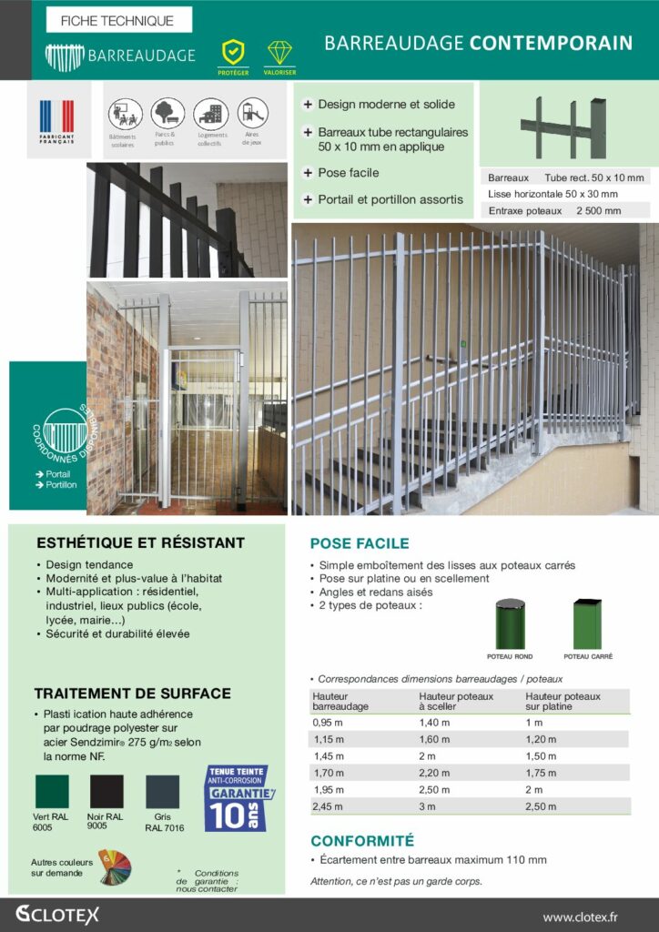 | Hauteurs barreaudage | De 1 à 2m50 |