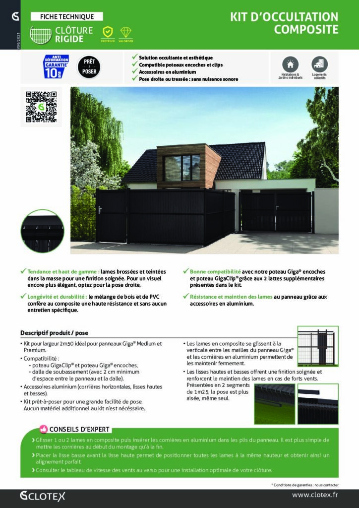 Compatible avec les poteaux Giga® / GigaClip® et panneaux Giga® ainsi qu’avec différents accessoires tels que la dalle de soubassement pour répondre à tous les besoins.