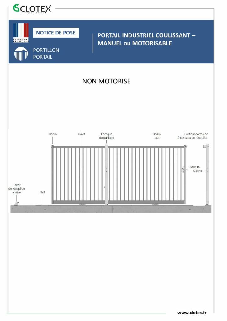 Montants du cadre « dépassants » créant ainsi une butée mécanique pour éviter que le portail ne sorte de sa zone de fonctionnement.