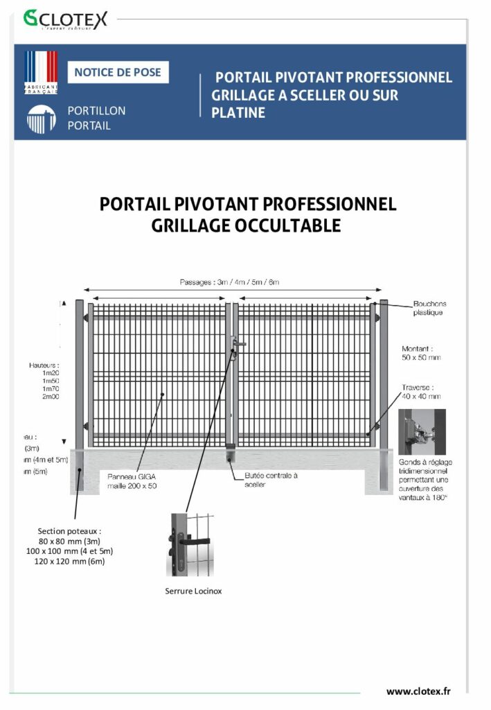 • Notice de pose Portail Pivotant PROFESSIONNEL Grillagé